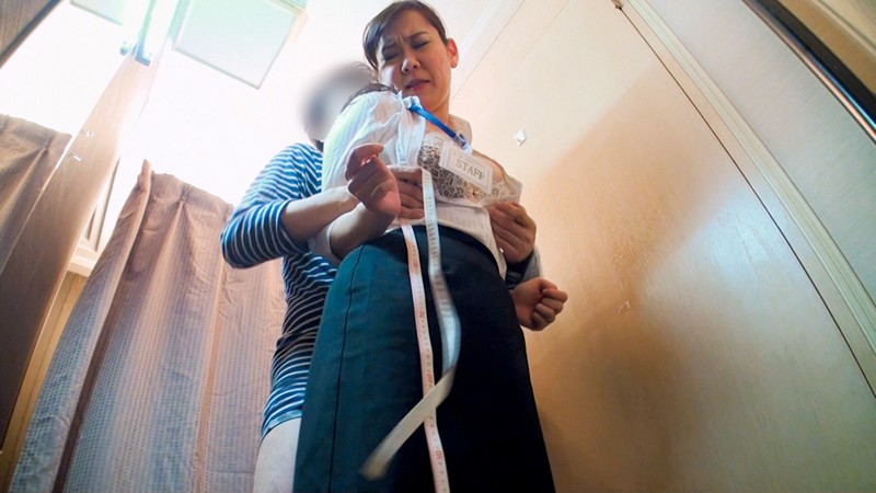 試着室でわざと大きいサイズのズボンをはいて、熟女店員が裾を合わせるため近づいたトコロに勃起したチ○ポを顔に近づける。カーテンの中は二人っきりの空間で女性店員の顔は股間近く!嫌がってるのに目線が定まらないのはムラムラしている証拠…「お客様!しまってください!」ご無沙汰気味の熟女店員さんは嫌がりながらも勃起チ○ポガン見で大興奮。